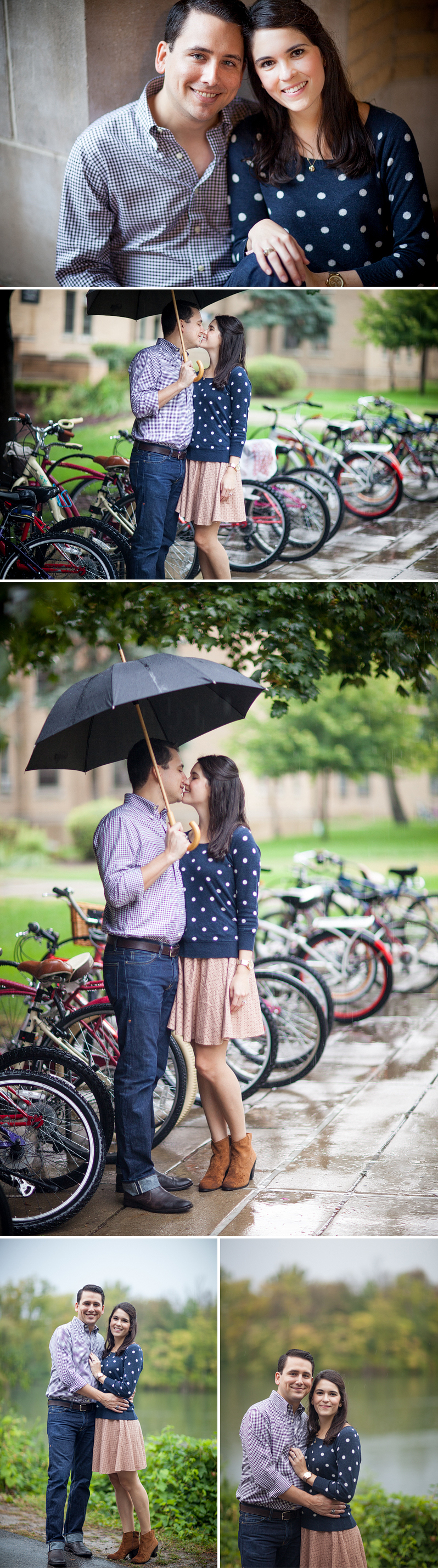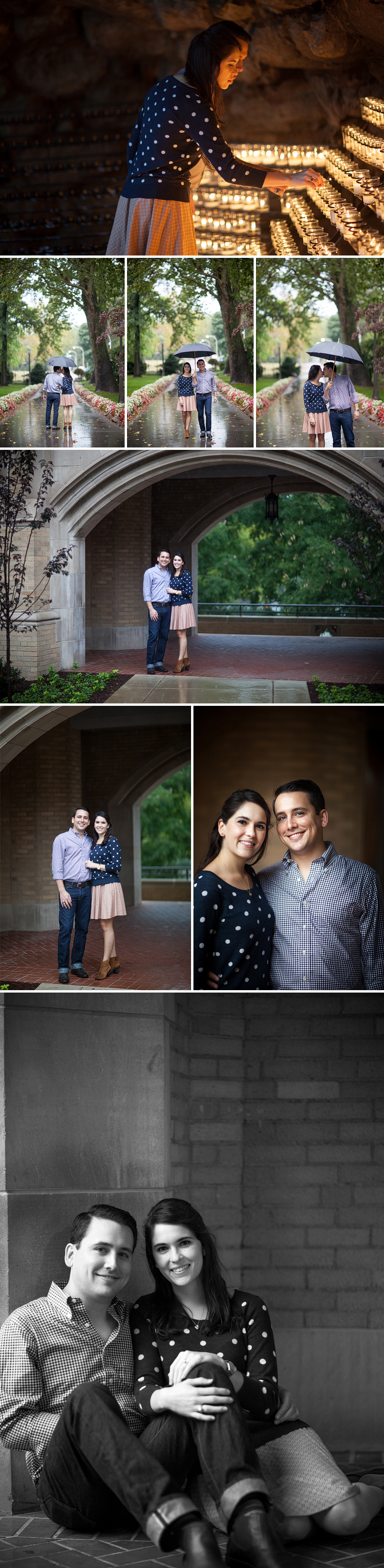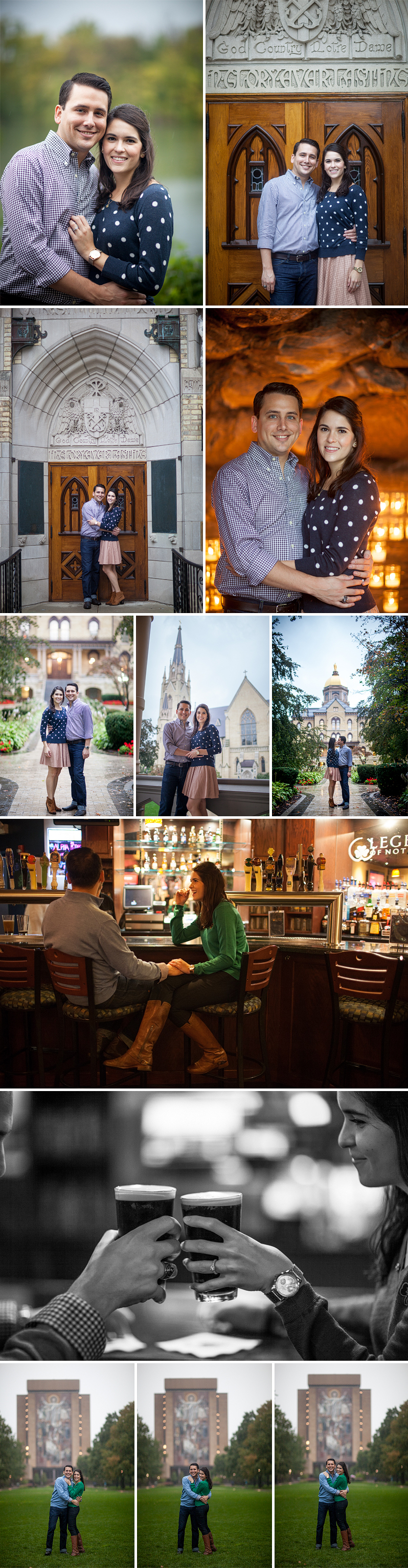 It was POURING rain this morning. Thunder, lightning, the whole deal… but that didn’t stop these two from totally rocking their engagement session! I met up with Briana and Josh at Notre Dame and we hit up all of the traditional spots on campus. It was a really fun shoot, but by the end of our session, we were cold and wet, so we stopped in at Legend’s Bar to warm up and grab a quick drink… not a bad way to start the day if you ask me!