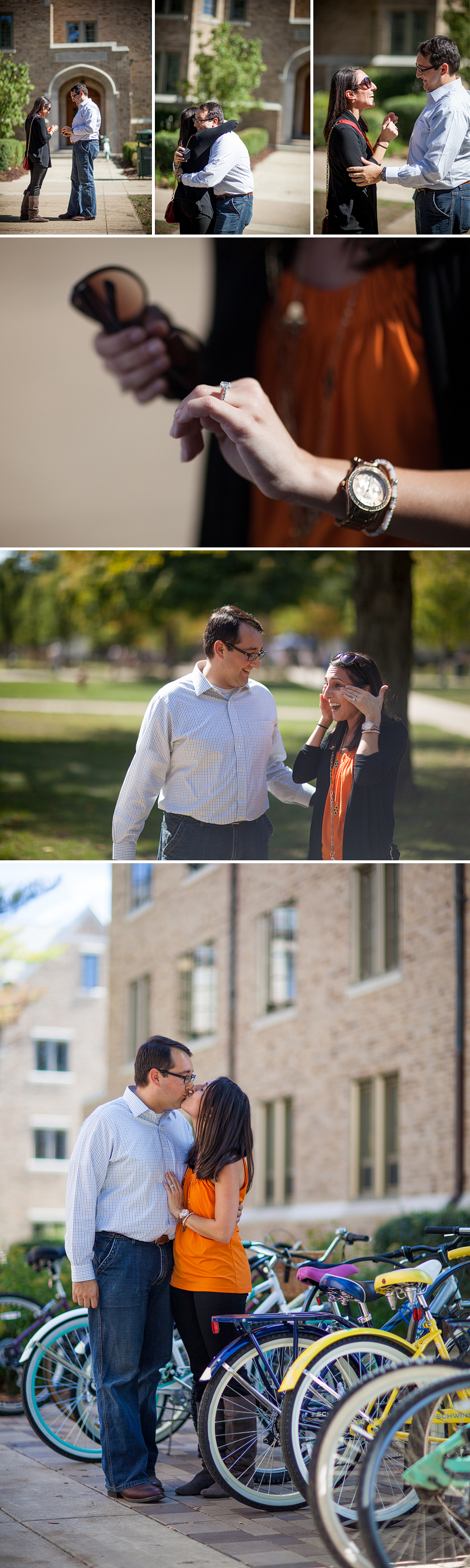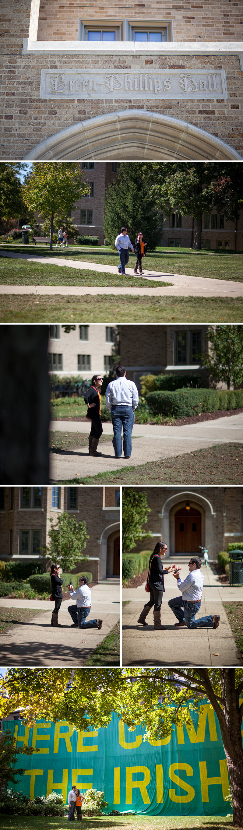 Ronnie proposed to Diana on campus at Notre Dame last Friday… and she said YES! I seriously love photographing proposals and this was no exception. I felt like a spy as I hid behind a tree, just waiting for Ronnie to get down on one knee. He planned it out perfectly and popped the question in front of Diana’s old dorm, Breen Philips. After (a very excited and surprised) Diana said yes, we walked around campus and took photos at all the hot spots. It was totally awesome and I was SO excited to be a part of it! Congratulations, Ronnie and Diana!!